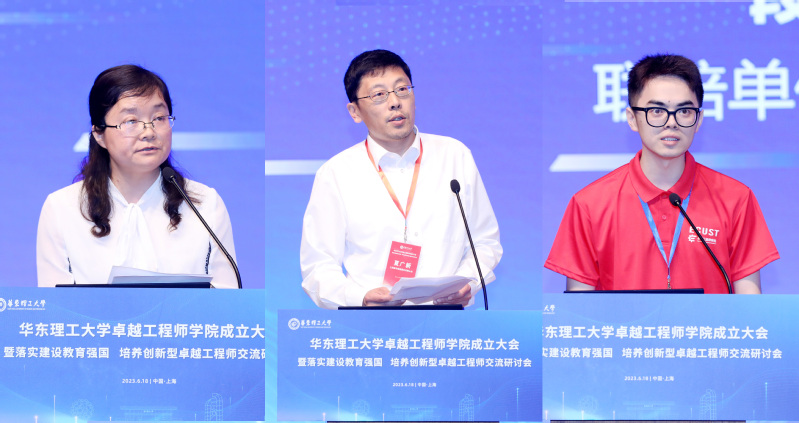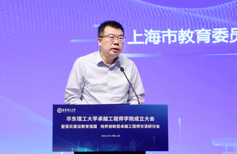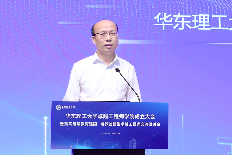 孙真荣在致辞中表示,上海深入学习贯彻党的二十大精神和中央人才工作会议“培养大批卓越工程师”的重要讲话精神,将卓越工程师培养作为上海高等教育高质量发展的重要方向和加快建设高水平人才高地的重要内容,印发《上海卓越工程师培养专项工作方案》,在人才奖励表彰、考核评价等方面给予政策支持,出台一系列促进卓越工程师培养的新举措。希望华东理工大学以成立卓越工程师学院为契机,聚焦重点领域,着力深化产教融合、科教融汇,探索创新型卓越工程人才培养的新范式,为服务国家重大战略和上海建设具有全球影响力的科技创新中心作出新的更大贡献。