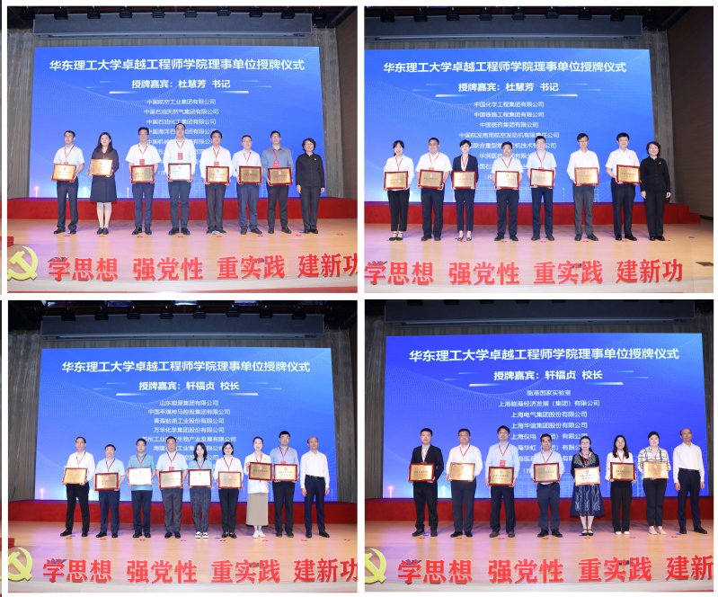 会上,成立了卓越工程师学院首届理事会。杜慧芳、轩福贞分别为首批29家理事单位授牌。首届理事会由石油化工、机械工业、电气工程、生物医药等领域的重点龙头企业、相关行业学会以及国家实验室等单位组成。中国石油天然气股份有限公司总工程师杨卫胜、中国中铁股份有限公司副总裁马江黔、中国医药集团有限公司副总经理董增贺作为理事单位代表发言。