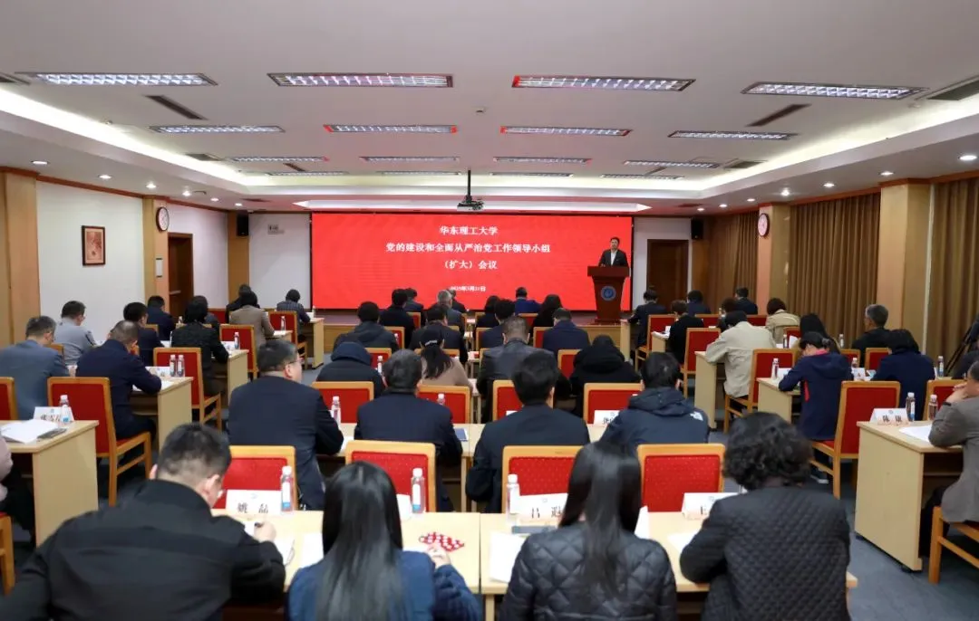 3月21日,华东理工大学召开党的建设和全面从严治党工作领导小组(扩大)会议,学习中央党的建设工作领导小组相关会议精神和教育部党组有关会议精神,对全校开展深入贯彻中央八项规定精神学习教育进行部署。校党委书记蒋传海主持会议并讲话,校党委副书记宋来作工作部署,校领导班子成员,校党的建设和全面从严治党工作领导小组成员,学校深入贯彻中央八项规定精神学习教育工作专班成员,二级党组织书记和有关职能部门负责人参加会议。