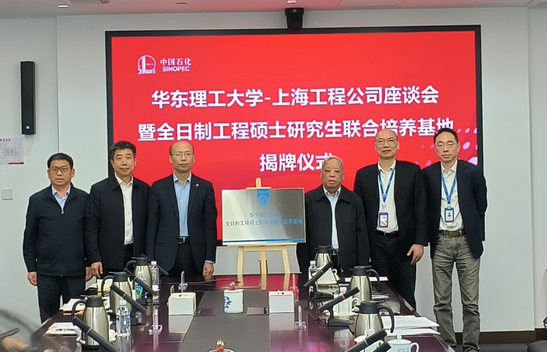 3月24日,华东理工大学—中石化上海工程有限公司座谈交流会暨“全国示范性工程专业学位研究生联合培养基地”揭牌仪式在中石化浦东科研中心举行。中国工程院院士、中国石化股份公司原总裁王基铭,我校校长轩福贞,上海工程公司执行董事、党委书记沙裕出席活动,上海工程公司总经理、党委副书记师敬伟主持座谈会。