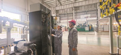 华东理工大学博士李冰玉(左)与中化学装备工程师通过工控柜设置参数
