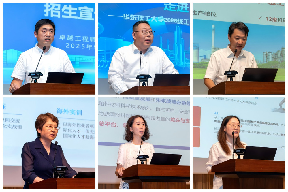 为增进同学们对工程硕博士培养改革专项及相关联合培养企业的了解,9月7日下午,华东理工大学卓越工程师学院通过线上线下相结合的方式举办2026年工程硕博士培养改革专项校企联合招生宣讲会。中国化学工程集团有限公司、中国石油化工集团有限公司、国家能源投资集团有限责任公司、中国海洋石油集团有限公司、苏州国家实验室、长三角国家技术创新中心、中国石油天然气集团有限公司、中国中化控股有限责任公司、中国铁路工程集团有限公司、微创投资控股有限公司、中国东方电气集团有限公司、上海电气集团股份有限公司、中国医药集团有限公司、上海医药集团股份有限公司和中国宝武钢铁集团有限公司等15家合作企业代表来校宣讲,并在会后与同学们展开深入沟通。宣讲会由卓越工程师学院副院长左鹏主持。