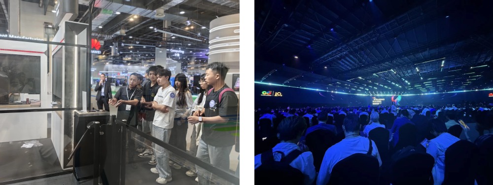 在活动中,同学们穿梭于主题展区与“开发者小镇”,通过主题演讲、技术论坛及互动打卡等形式,沉浸式体验智能技术在多领域的融合应用,在领略前沿科技的同时收获一段充满启发的沉浸式学习体验。同学们深刻感受到,站在智能化变革的关键节点,作为未来的参与者和开发者,唯有持续学习、主动求变,才能在浪潮中明确方向,与时代共振同行。