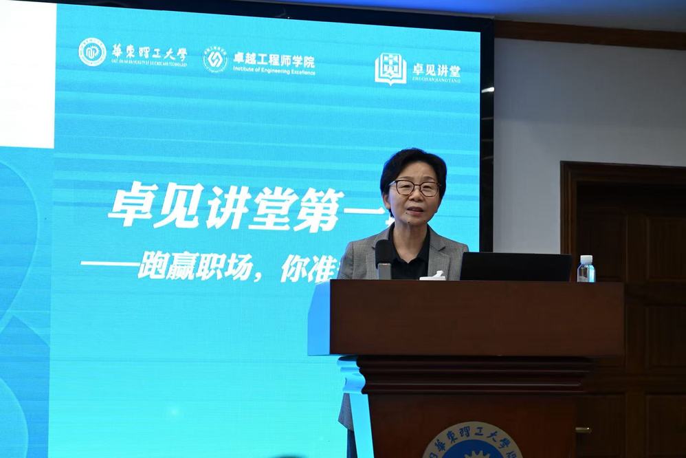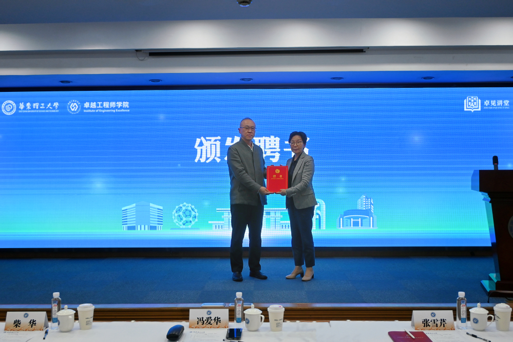 10月21日下午,华东理工大学卓越工程师学院首期“卓见讲堂”在徐汇校区逸夫楼演讲厅顺利举行。中国宝武钢铁集团高管冯爱华女士受邀做客讲堂,校党委常委、宣传部部长柴华出席并为其颁发“卓见讲堂”特聘讲师聘书,活动由卓越工程师学院党委书记兼常务副院长张雪芹主持。