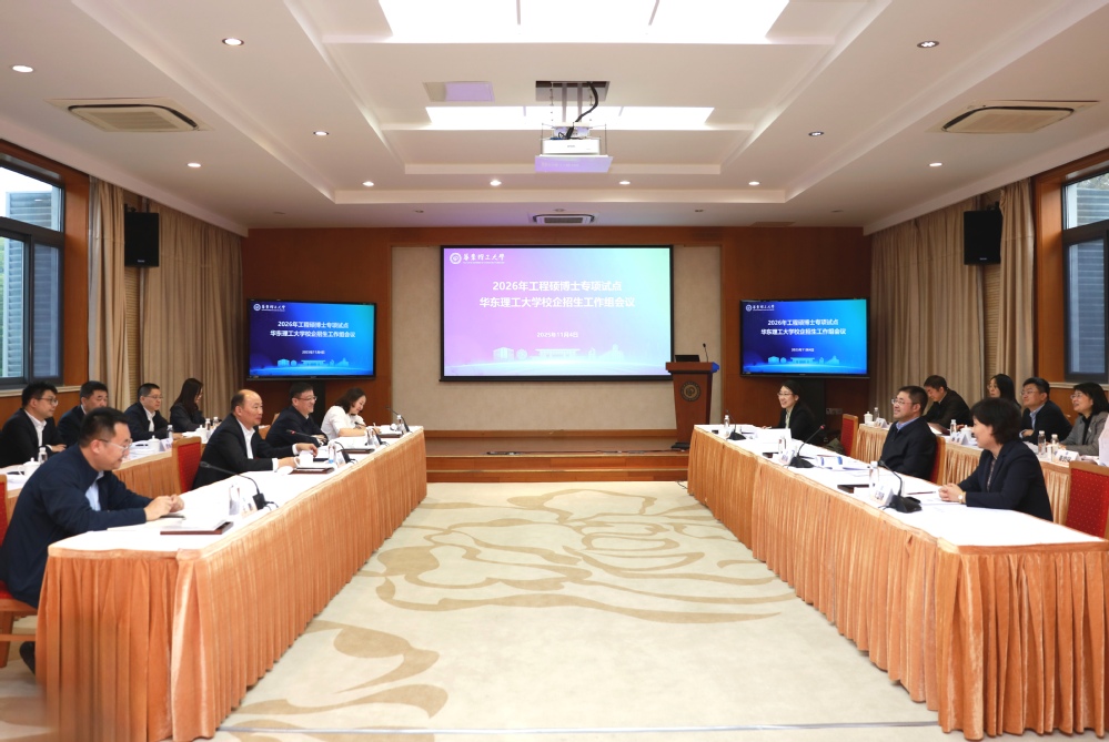 11月4日,华东理工大学2026年工程硕博士专项试点校企招生工作组会议在徐汇校区和平楼第二会议室召开。中国化学工程集团党委书记、董事长莫鼎革,华东理工大学党委书记蒋传海出席会议并讲话。国家能源集团组织人事部副主任郭爱军,中国中化人力资源部副总监王鹏,国药集团人力资源部(改革办公室)副主任赵蕊,华东理工大学党委常委、副校长王慧锋,华东理工大学校长助理、研究生院院长杜文莉等参加会议。会议由蒋传海主持。