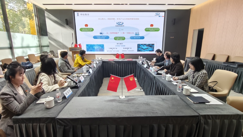 11月21日,华东理工大学党委常委、副校长王慧锋带队赴长三角国家技术创新中心开展合作交流。长三角国创中心先进超声技术研究所所长周红生、数字医疗技术研究所所长陈勇等参加座谈。
