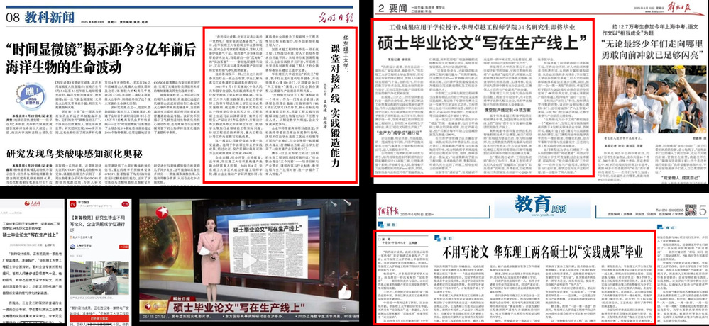 三年来,学院与一批国有大中型企业共同招生联培573人,首届工程硕博士专项毕业生在联培及相关领域就业率达100%,2人以创新实践成果申请获得学位。实现了从学科单一独立向学科交叉和校企融通、从重理论传授向强工程能力创新、从评价标准唯论文向重实践成果的转变。相关做法成效获得新华社、光明日报、解放日报、微言教育等多家主流媒体报道。